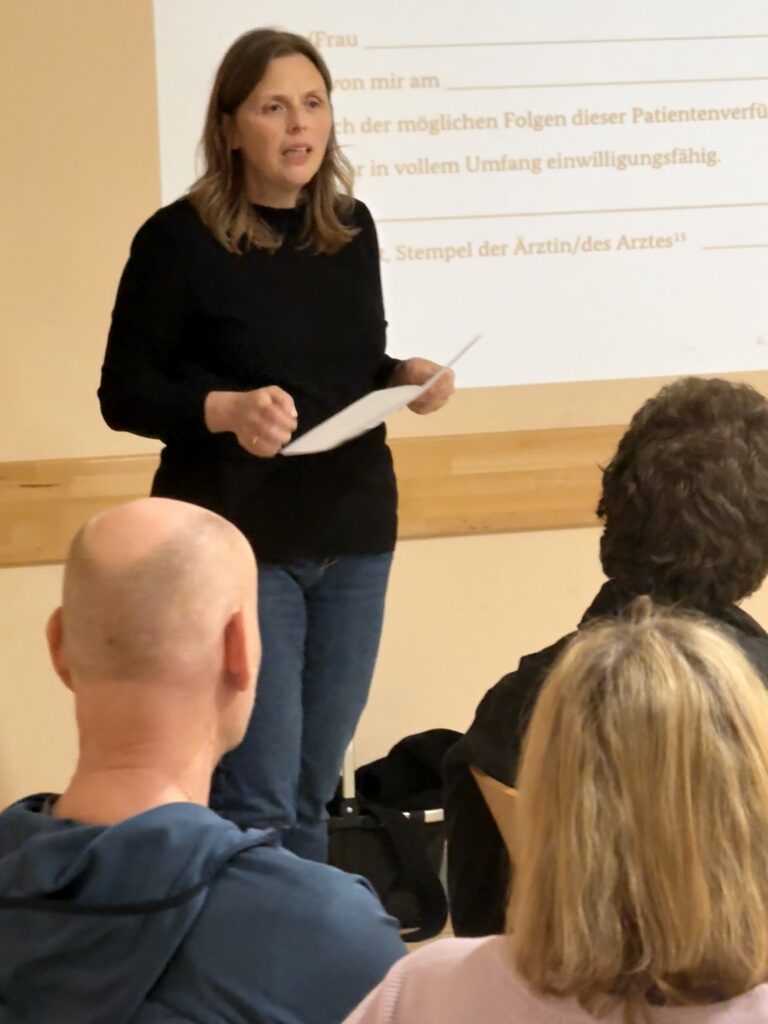 Juristin und GRÜNE Landtagskandidatin Ute Ernst referierte vor zahlreichen Interessierten im Bürgerhaus Ockenfels über Patientenverfügung und Vorsorgevollmacht.